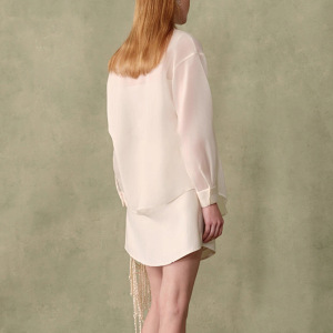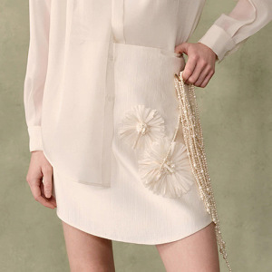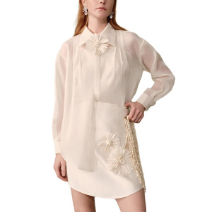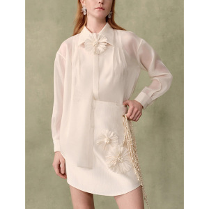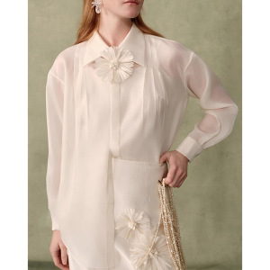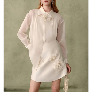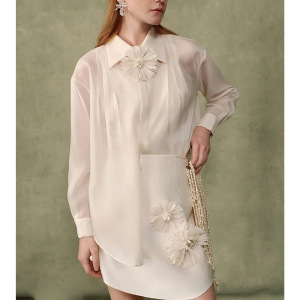 小众轻奢立体花朵套装翻领压褶微透宽松防晒中长衬衣显瘦半身裙短