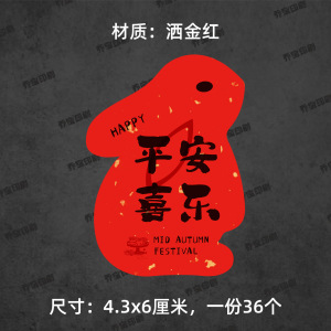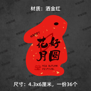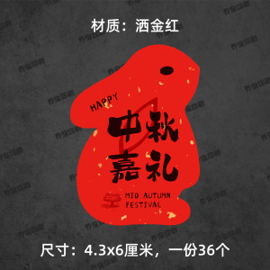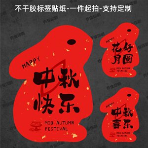 中秋快乐贴纸兔子形状可爱喜庆中秋月饼贴纸标签福满中秋心意手作