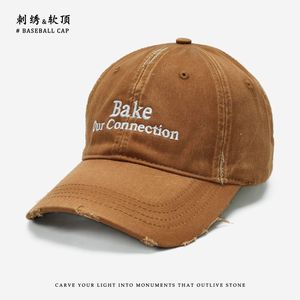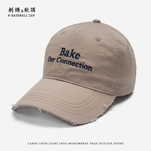 美式街头帽檐破洞嘻哈棒球帽男女同款大头围字母刺绣情侣鸭舌帽潮