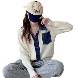 2025年秋冬针织衫设计感牛仔拼接衬衫领女毛衣新款上衣宽松时尚长