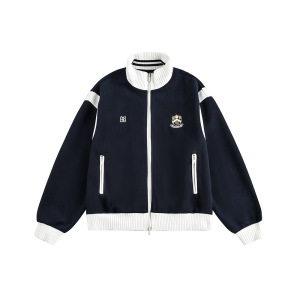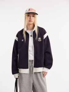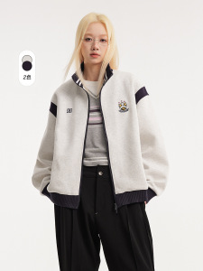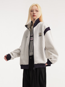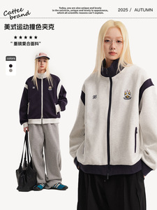 CATTEE美式复古撞色学院风立领开衫卫衣男女休闲运动情侣外套
