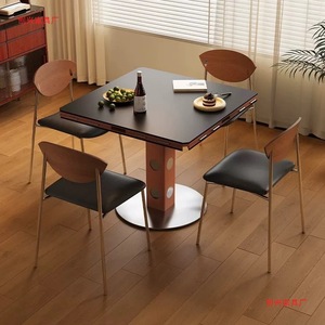 包豪斯中古风实木折叠餐桌可变圆桌2025新款正方形可伸缩美式圆形