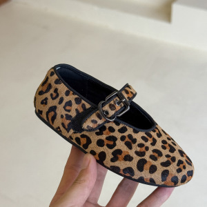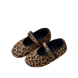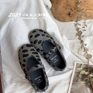 QQO童鞋 2025秋季新款儿童时尚豹纹浅口单鞋女童软底玛丽珍公主鞋