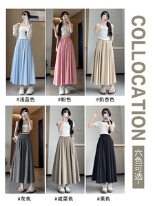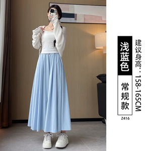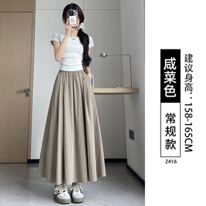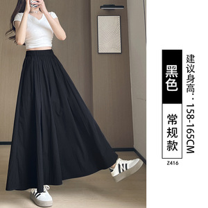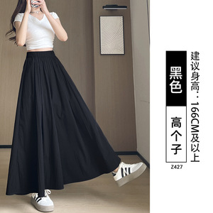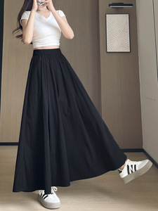 黑色山本裙女夏季2025新款高腰a字半裙长裙小个子垂感百褶半身裙