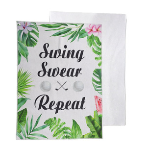 跨境新款高尔夫球巾印花速干华夫格超细纤维擦杆巾擦球巾