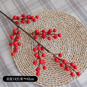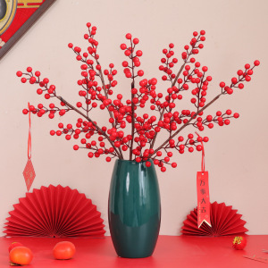 模擬赤い果実、フォーチュンフルーツ、ホリデーツリー、年間販売花、造花、ホームウェディングデコレーション、祝福バケツ、高級卸売