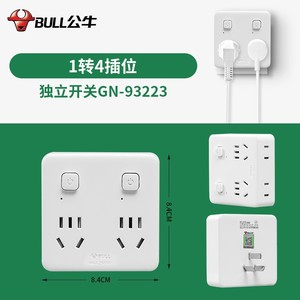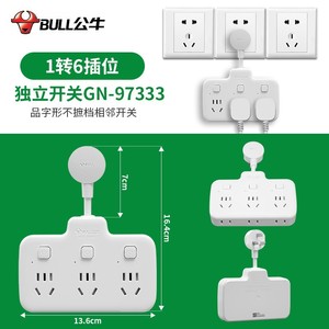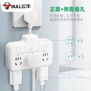 公牛电排插座转换器开关超薄扁转接插头分插器上墙一转多功能插排