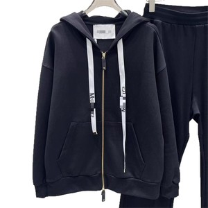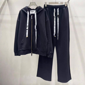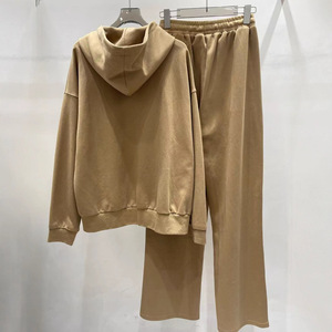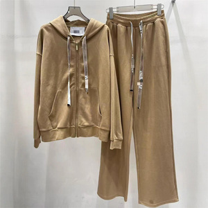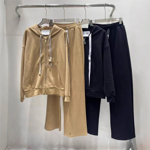 纯色百搭连帽宽松时尚套装2025秋冬新品休闲外套+直筒裤两件套女
