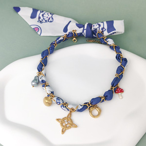 欧米で人気のステンレス製リボンネックレス、クラシックでエレガントなブルーのスカーフ、高級感があり万能な色落ちしない鎖骨チェーン
