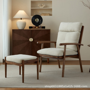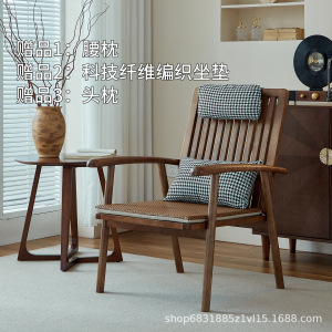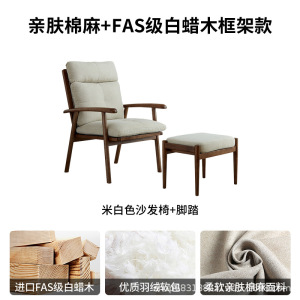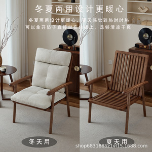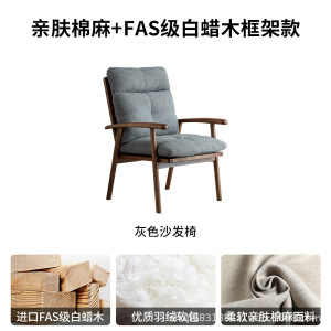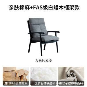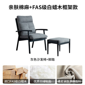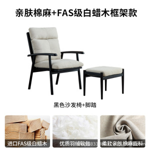 北欧实木布艺沙发椅现代简约客厅阳台休闲椅单人沙发椅黑色靠头椅