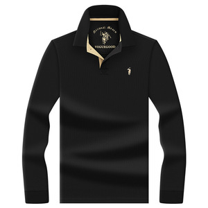 100%丝光棉刺绣保罗POLO衫轻奢男士t春秋翻领高档商务休闲长袖T恤