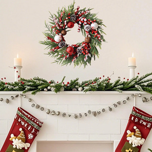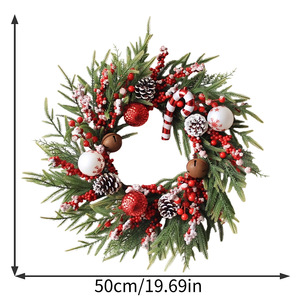 クリスマスガーランドドア吊り模擬塗装光波ボール赤い果実の鐘柔らかい松葉ヒノキの葉ワイヤーリングガーランド装飾