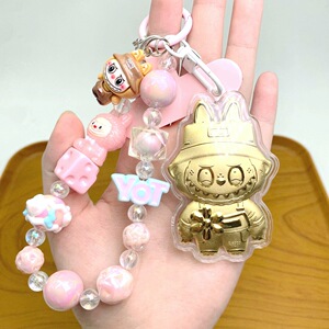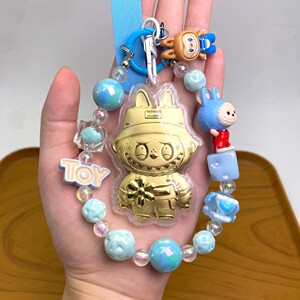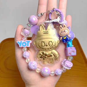 Labubu ゴールデンキーホルダー純金 999labubu ドーパミン携帯電話チェーンハンドジュエリー友人へのギフト卸売