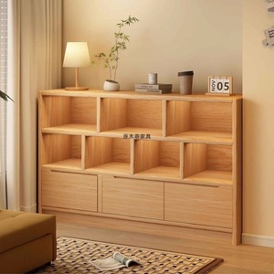 实木书柜落地置物架一体靠墙家用客厅收纳柜储物柜卧室