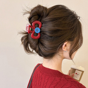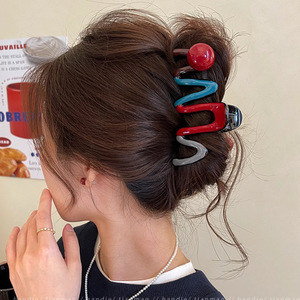 2#红色珍珠撞色抓夹10.5cm