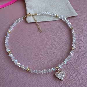 スイートクール銅象嵌ジルコンラブネックレス-透明色