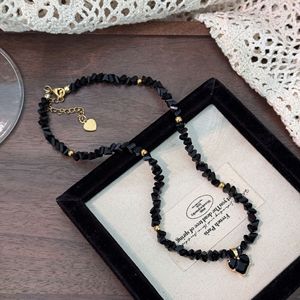 スイートクール銅象嵌ジルコンラブネックレス-ブラック