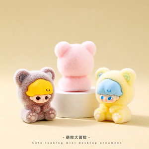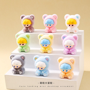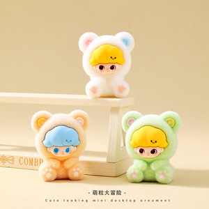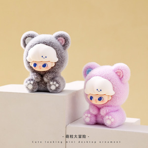 新款萌粒坐姿熊熊植绒公仔车载桌面小摆件潮玩对对碰盲盒盲袋配件