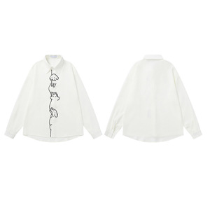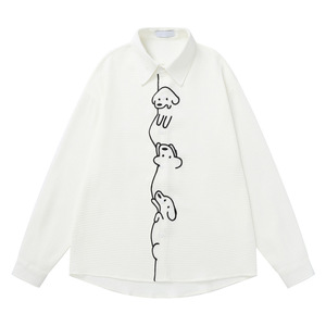 2025 新しいかわいい子犬刺繍長袖シャツ男性と女性のための秋ルーズ小人年齢軽減カジュアル白トップ