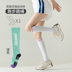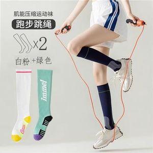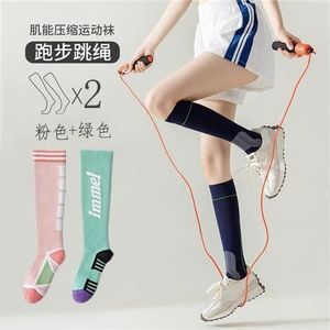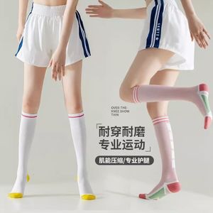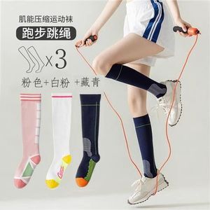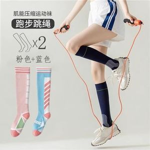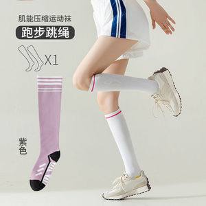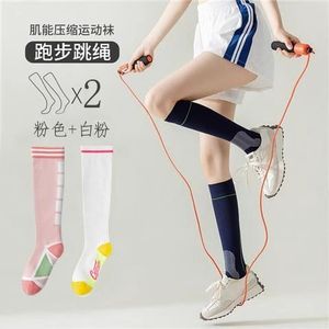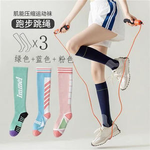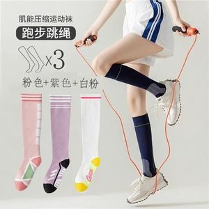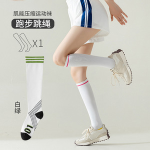 夏季健身拼色字母女款瑜伽袜压力过膝长筒袜专业健身袜小腿压力袜