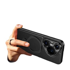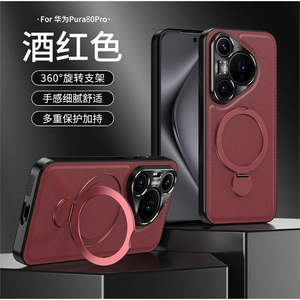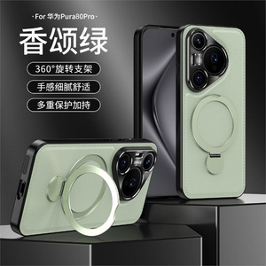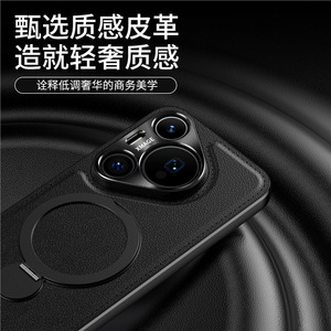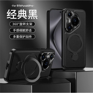 华为Pura80pro高级感皮革商务手机壳金属磁吸支架镜头全包套新款