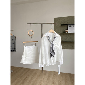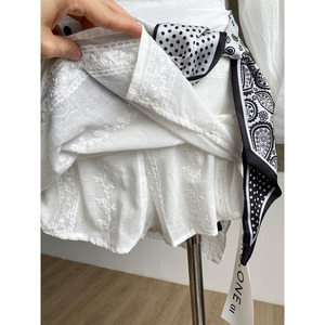 オールドマネースタイルのハイエンドスプライシングレースジャカード日焼け止めシャツシルクスカーフショートスカート2025夏の新しい3点セット