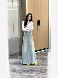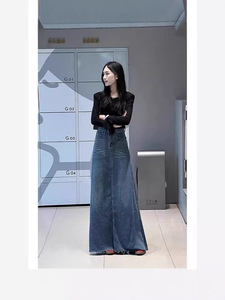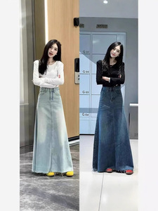 复古水洗毛边牛仔半身裙女春季新款高腰A字长裙宽松显瘦包臀裙潮