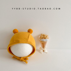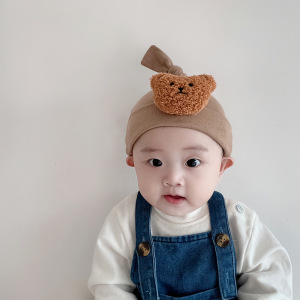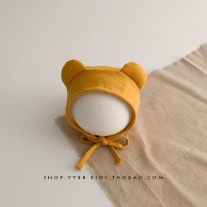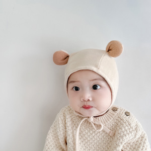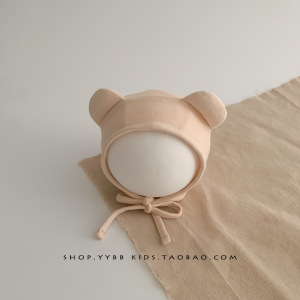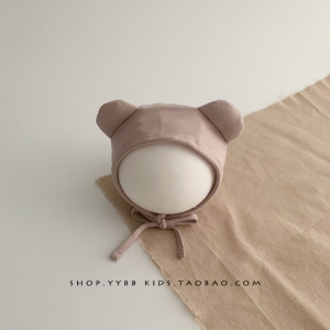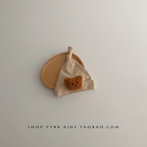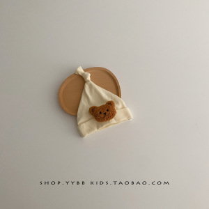 ins小熊新生婴儿春秋薄款胎帽0-12月无骨可爱宝宝包头套头帽子