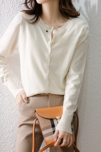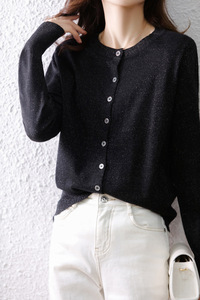 金银丝圆领开衫女长袖气质显瘦上衣设计感减龄法式小众薄款外搭