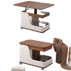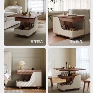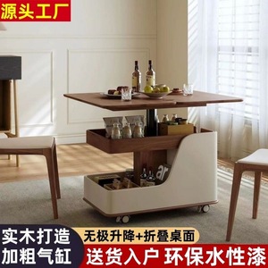 实木可折叠茶几多功能边几客厅沙发升降边几带轮可移动推车茶台