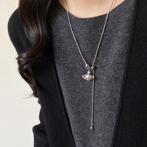54#シルバー パール プラネット ペンダント タッセル セーター チェーン