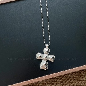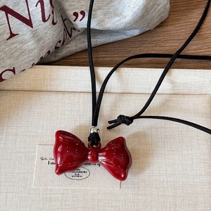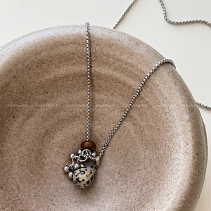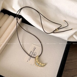 22#ホワイトレザーコード中空メタルバッグネックレス