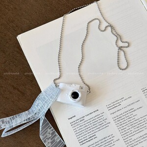 11 # ホワイトカメラレースリボンネックレス - カメラが光ります