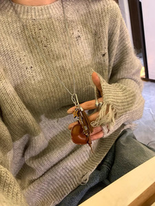 55#ゴールド パール プラネット ペンダント タッセル セーター チェーン