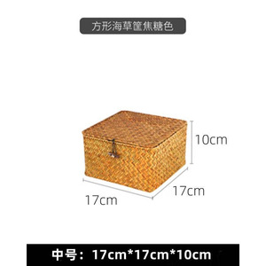 収納ボックス 和風収納ボックス デスクトップ収納バスケット 蓋付き海ギフトボックス 竹編みお土産 籐バスケット シンジ