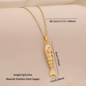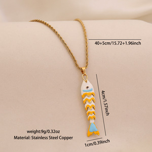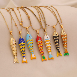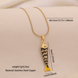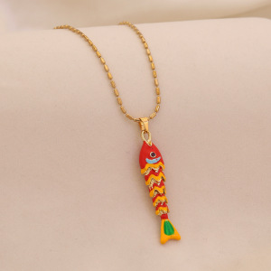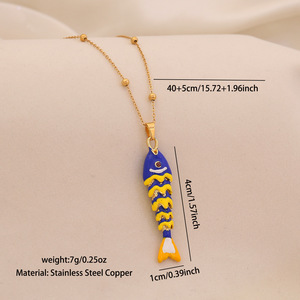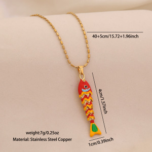 [Bing Meng] 美しいオイルドリップ立体揺れる魚ペンダントネックレスライト高級ステンレスネックレス N1603