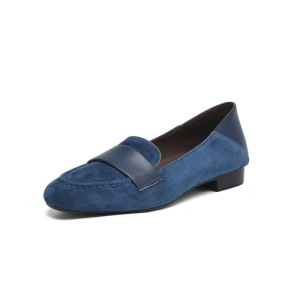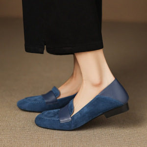 羊反绒!蓝色显白百搭乐福鞋女2025新款真皮圆头低跟柔软舒适单鞋