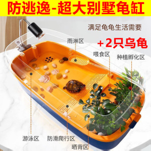 养乌龟专用缸家用带盖水族箱底部排水防逃逸超大别墅带晒台