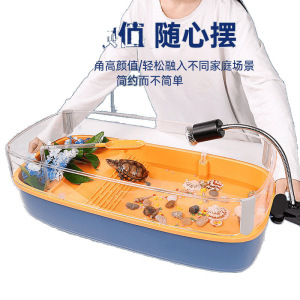 家用(蓝+橙-防逃带罩乌龟缸)换水方便