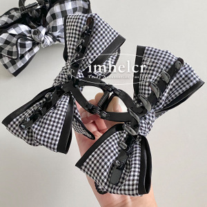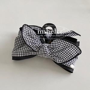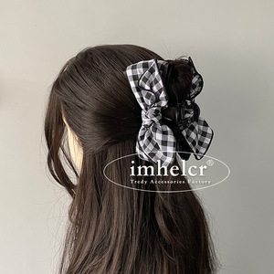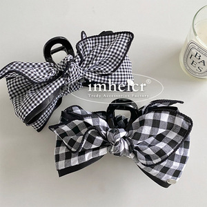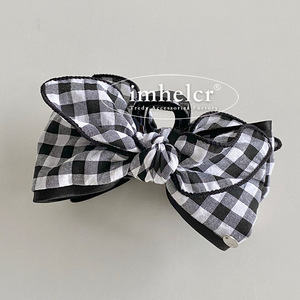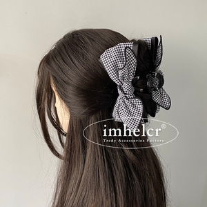 日韩黑白格银标蝴蝶结抓夹高级感气质百搭新款后脑勺盘发鲨鱼夹女