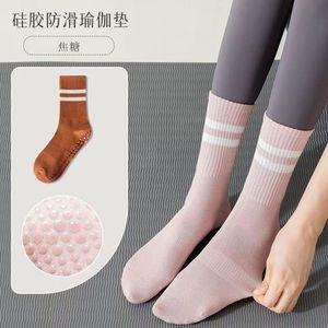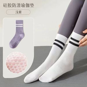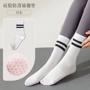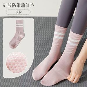 春と夏のノンスリップダンススポーツソックス女性のミッドチューブ平行棒ストライプヨガソックスフィットネスピラティスノンスリップシリコーン綿の靴下