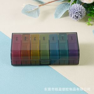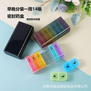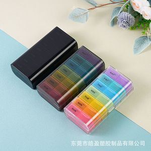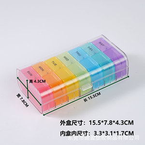 亚马逊爆款一周药盒新款14格药盒食品级药丸彩虹色便携式旅行药盒