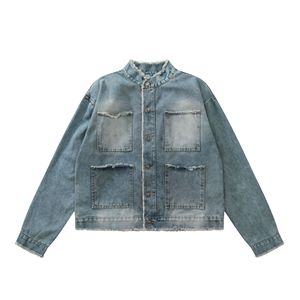 韓国スタイルニッチローエッジグラデーションカラーショルダーパッドデニムジャケットメンズ2025秋新作多用途ジャケットルーズトップ