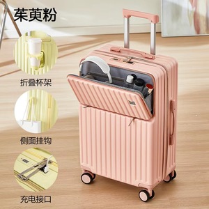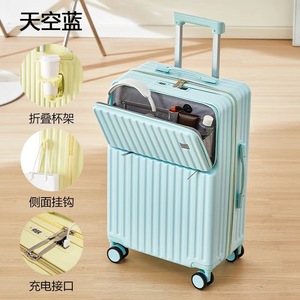 小型登机箱前开口行李箱纯色男女学生时尚拉杆箱新款大容量旅行箱