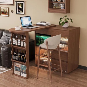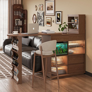 实木吧台桌子可伸缩隔断柜客厅小户型家用移动日式岛台餐边柜一体
