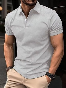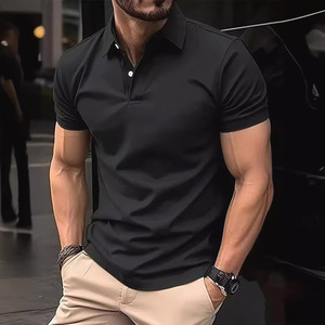 美式冰丝棉纯色POLO衫肌肉男修身弹力短袖翻领工装T恤紧袖保罗衫