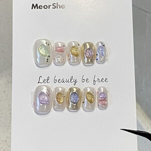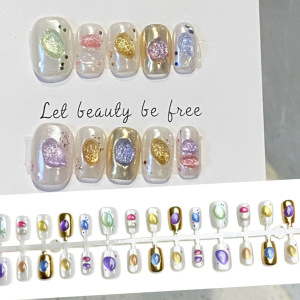 细闪猫眼多巴胺泡泡短梯穿戴甲甜妹仙女可爱美甲贴片仙气约会ins