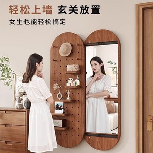 跑道洞洞板穿衣镜隐藏式推拉镜子全身镜家用可关闭玄关壁挂试衣镜