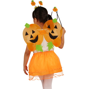 ハロウィン子供用ドレスアップカボチャの羽スカート魔法の杖4点セットパーティーパーティーカボチャガールドレスアップ