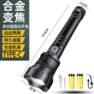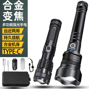 跨境专供P70强光手电筒P50 USB充电伸缩调焦超亮远射铝合金手电筒